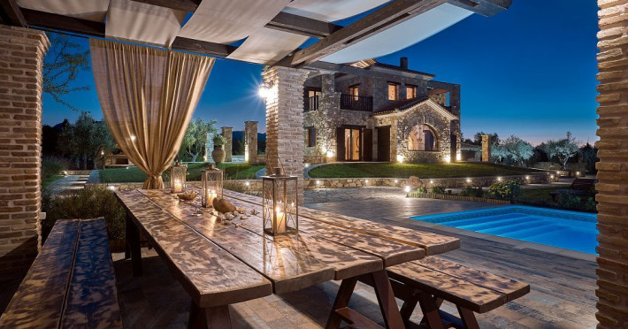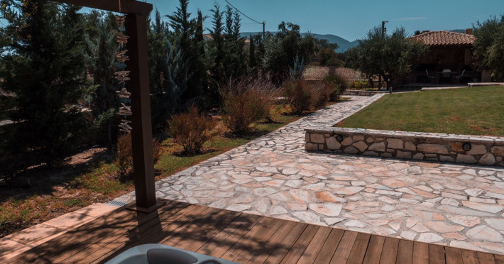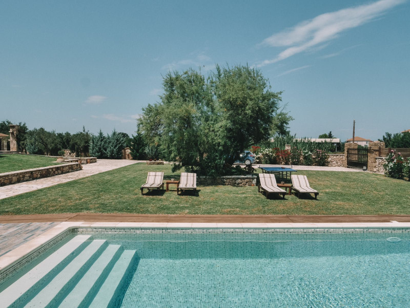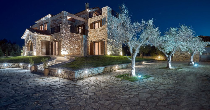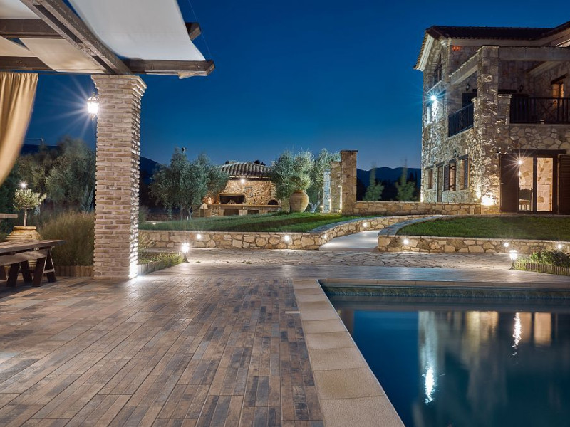 Palazzo Di P, welcomes you to a charmingly attractive location, surrounded by a lush private garden, fully equipped outdoor bbq amp; swimming pool and all the most modern comforts and services of a 5-star hotel standard. The property is sophisticated in style and furnished to the highest standards, with lavish use of marbles and an eclectic combination of period and contemporary furniture. Palazzo consisits of 3.000sq.m. of terrain and 250sq.m of accommodation with 5 bedrooms, 2 of them ensuite, kitchen and comfortable dining and sitting rooms. The property offers secure parking for up to 4 vehicles within the grounds. The enticing atmosphere of Palazzo is within 10min drive from Zante centre and in the middle of the island allowing easy and quick access to all well known sights and resorts such as Shipwreck, Blue Caves, Marathonisi Island, Vasilikos, Gerakas.