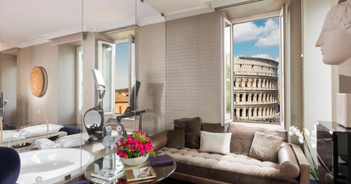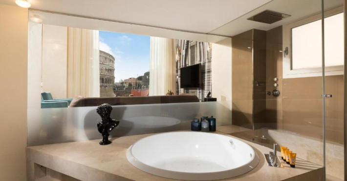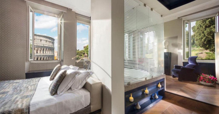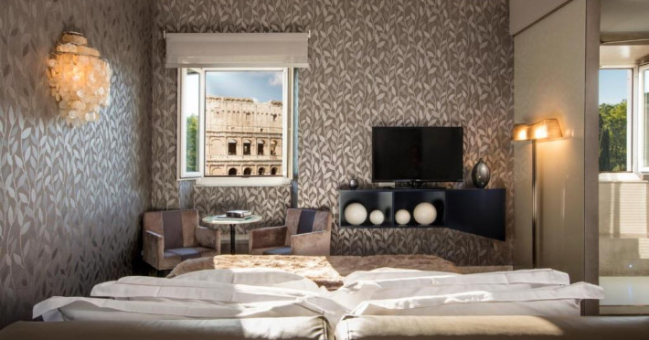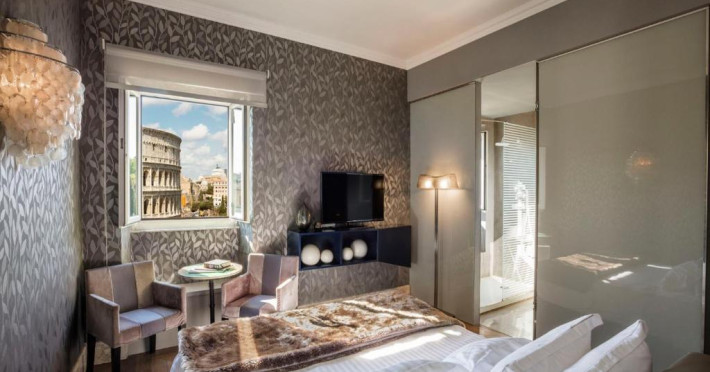 Unele unități de cazare au vedere la ruinele antice ale Forumului Roman. Printre alte facilități din cameră se numără halat de baie și papuci, precum și minibar și canale cu vizionare cu plată.