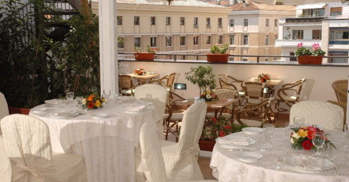 A nice and refined atmosphere is what Palazzo Turchini’s guests encounter since their entrance in the hall, where the floor is made of precious golden Calacatta marbles, and which is furnished very traditionally. A beautiful internal garden, in the heart of the building, is located behind the reception, where one can find high qualified personnel. From the hall one can reach a comfortable and reserved bar, with soft music. There are also rooms available for a multifunctional use, with tables and work equipment. On the first and on the highest floor one can use a little room for exhibitions and also a little meeting room for a limited number of people. On the Hotel’s roof a bright and wide terrace with some tables offers to our guests the possibility to spend pleasant moments of relax in a magic and exclusive frame.A nice and refined atmosphere is what Palazzo Turchini’s guests encounter since their entrance in the hall, where the floor is made of precious golden Calacatta marbles, and which is furnished very traditionally. A beautiful internal garden, in the heart of the building, is located behind the reception, where one can find high qualified personnel. From the hall one can reach a comfortable and reserved bar, with soft music. There are also rooms available for a multifunctional use, with tables and work equipment. On the first and on the highest floor one can use a little room for exhibitions and also a little meeting room for a limited number of people. On the Hotel’s roof a bright and wide terrace with some tables offers to our guests the possibility to spend pleasant moments of relax in a magic and exclusive frame.