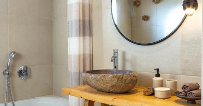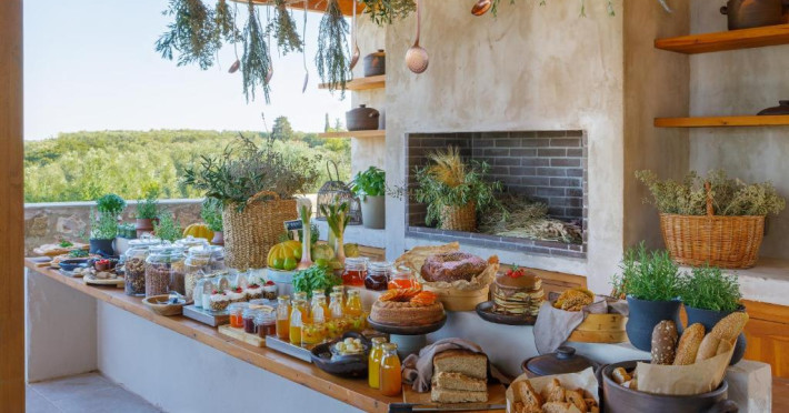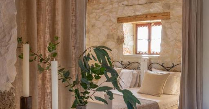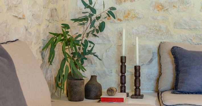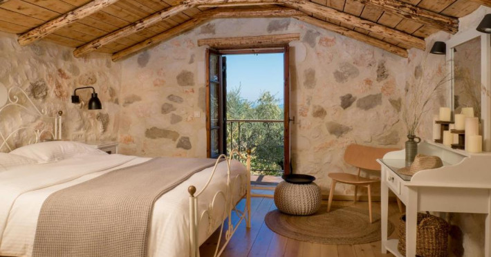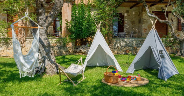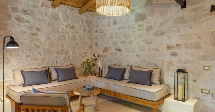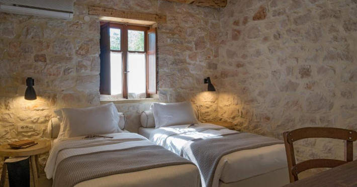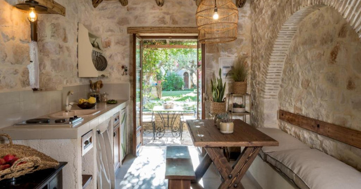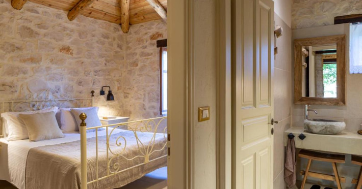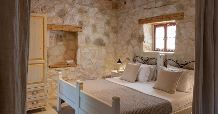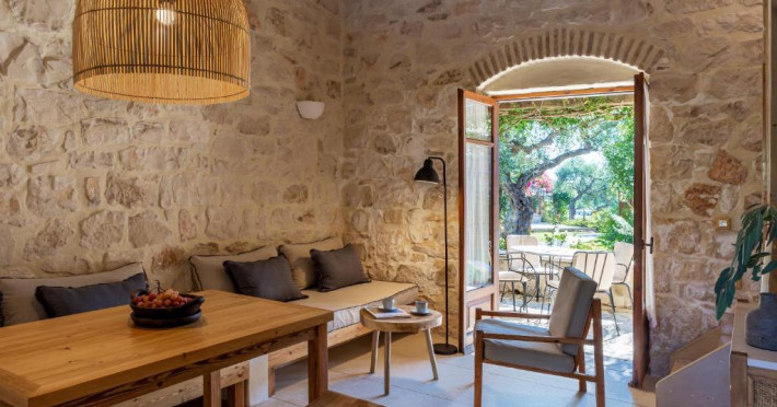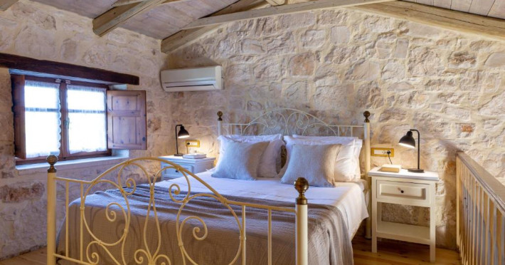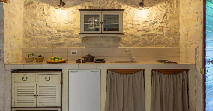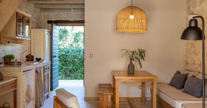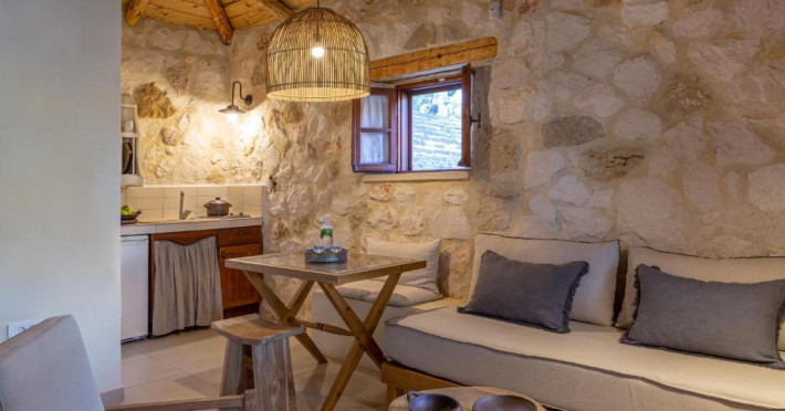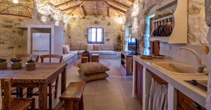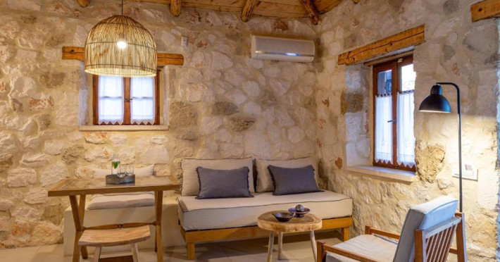 Toate vilele sunt amenajate in culori calde, cu materiale naturale și tavan din lemn. Fiecare casă include 1 sau 2 dormitoare, living, bucătărie complet utilată și zonă de luat masa. Vilele au 1 sau 2 băi și terasă privată, cu vedere la plantatia de măslini.