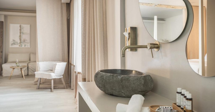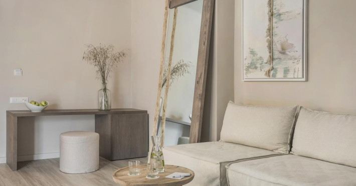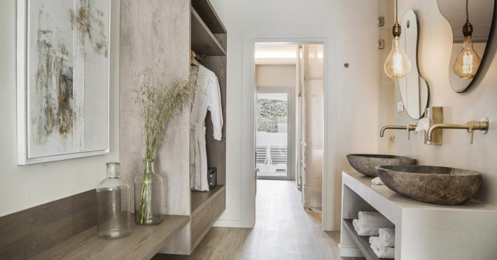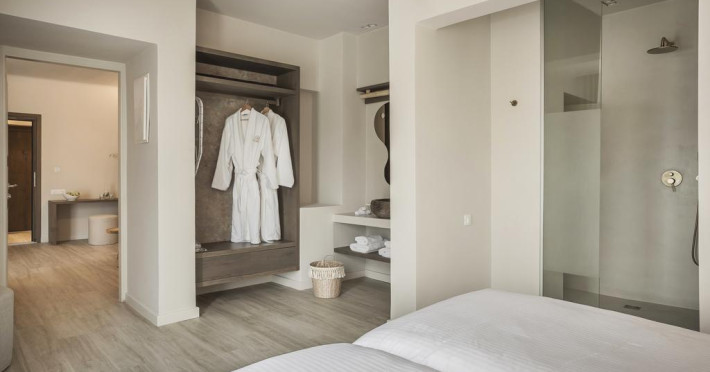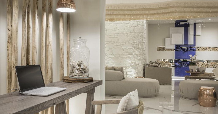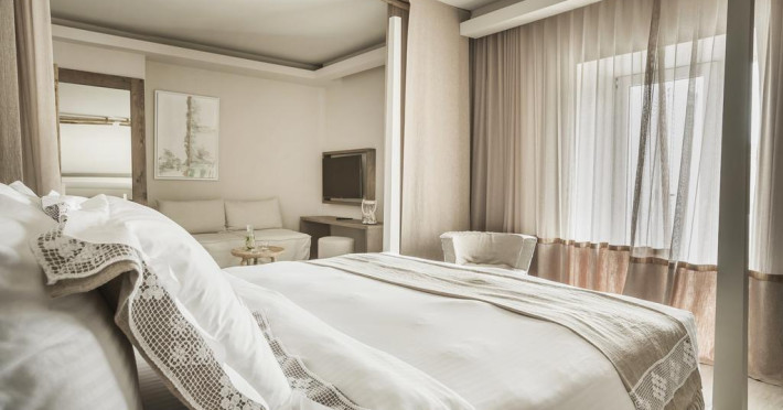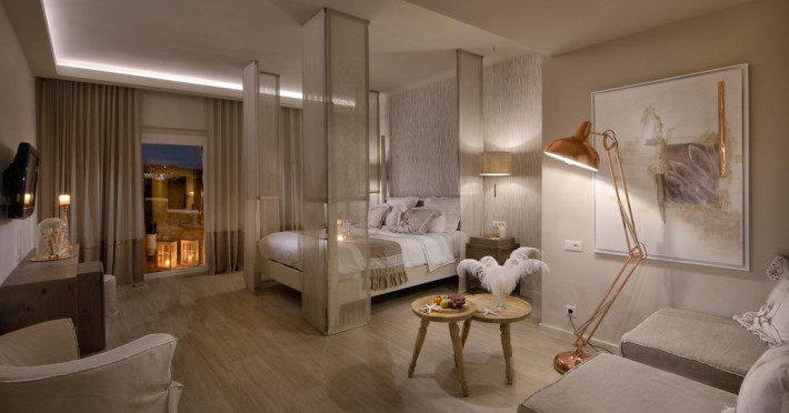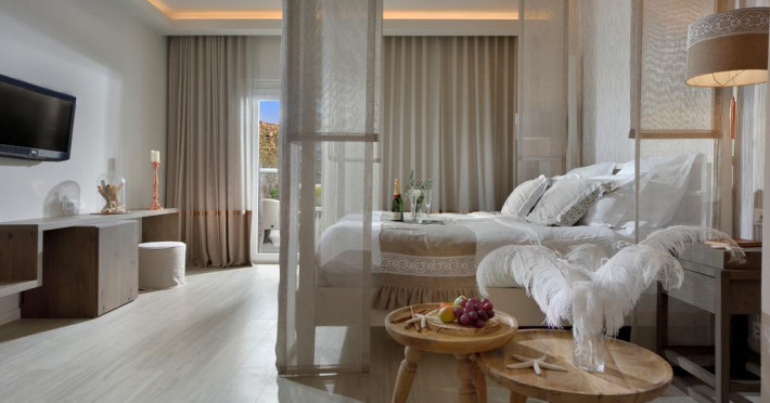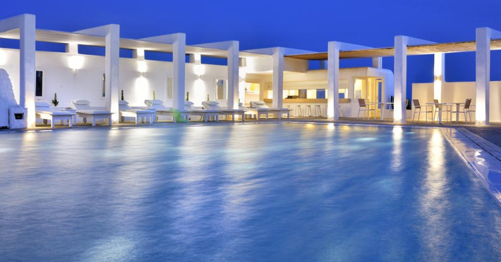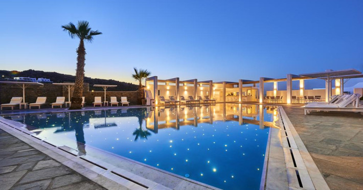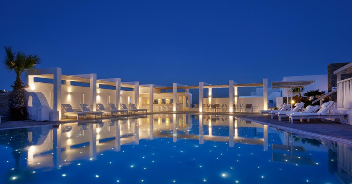 Palladium Boutique Hotel este o proprietate de 5 stele care se află în Platys Gialos, la o distanță de 200 m de plaja Psarou și oferă piscină în aer liber, cu șezlonguri și umbrele de soare, precum și un centru spa care asigură servicii pentru un sejur extrem de relaxant. Facilitățile de la Palladium Boutique Hotel includ și sală de fitness. Proprietatea are, de asemenea, servicii de recepție cu program non - stop, concierge și închirieri auto. Se oferă acces gratuit la internet Wi-fi în spațiile publice. Parcarea este disponibilă la proprietate gratuit.