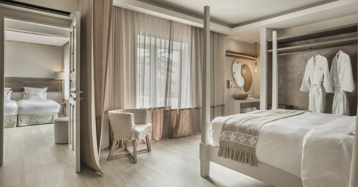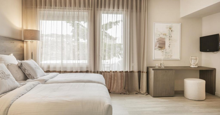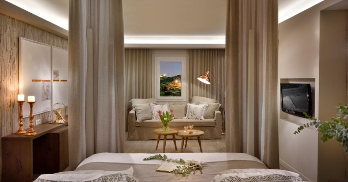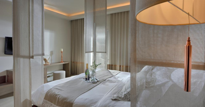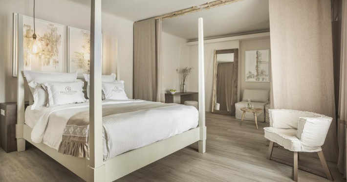 Unele camere au balcon cu vedere la mare sau la piscină. Camerele confortabile de la Palladium Boutique Hotel au pardoseală de gresie/ marmură, aer condiționat, Tv cu canale prin satelit și seif. În camere există baie cu cadă sau duș ce are în dotare foehn și articole de toaletă gratuite. Fiecare cameră dispune de minibar și cană-fierbător. Oaspeții pot solicita serviciul de room service pentru a servi masa sau diverse băuturi. Oaspeții au acces gratuit la serviciul Wi-fi în camere. Curățenia in cameră se face zilnic. Anumite camere au zonă de relaxare cu canapea și cadă cu hidromasaj care asigură un plus de confort și răsfăț. Proprietatea oferă camere pentru familie cu o suprafață mai mare și un număr mai mare de paturi față de cele standard. Se pot rezerva de asemenea camere pentru nefumători.