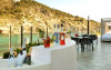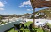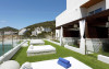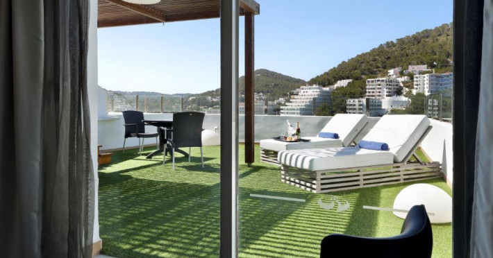 Palladium Hotel Cala Llonga are o terasă mare cu șezlonguri și un teren de tenis.