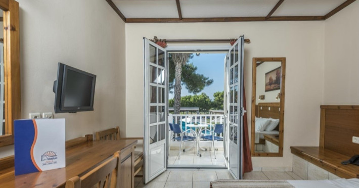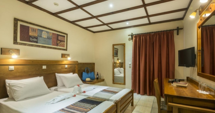 Sunt disponibile 98 camere. Camerele de la Palladium Hotel sunt dotate cu aer condiționat, Tv cu canale prin satelit și seif. În camere există baie cu cadă sau duș prevăzută cu foehn. Unele camere au balcon, cu vedere la piscină, unde oaspeții se pot relaxa în voie. Oaspeții au acces gratuit la serviciul Wi-fi în camere. Curățenia in cameră se face zilnic.