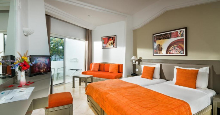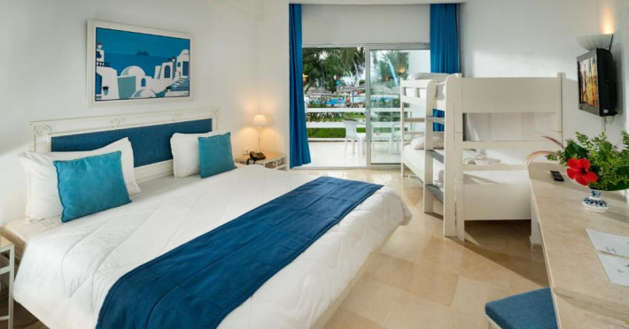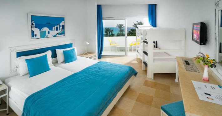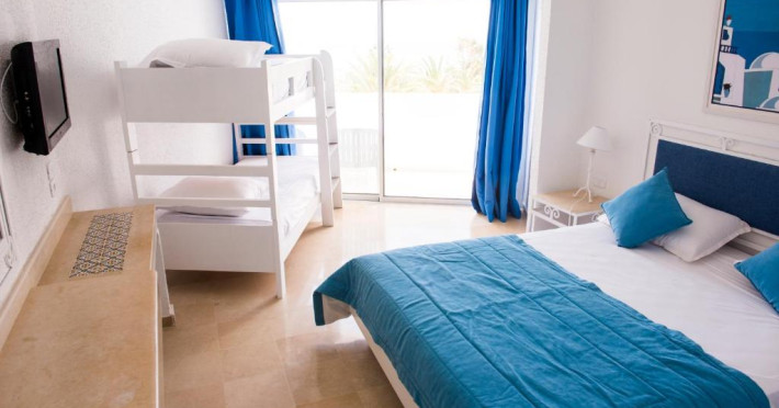 Camerele de la Palm Beach Club Hammamet au în dotare aer condiționat și Tv. Oaspeții au la dispoziție serviciul de room service pentru a servi masa sau diverse băuturi. În camere există baie cu cadă sau duș prevăzută cu foehn. Oaspeții au acces gratuit la serviciul Wi-fi în camere. Camerele au balcon cu vedere la mare sau la piscină. Curățenia in cameră se face zilnic. Proprietatea oferă camere pentru nefumători.