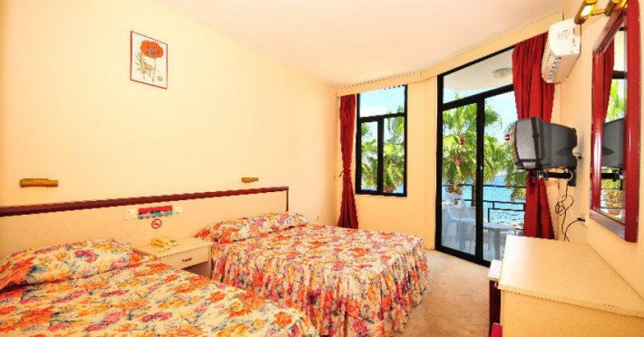 Fiecare cameră oferă cană-fierbător și mașină pentru prepare cafea sau ceai. Oaspeții pot solicita serviciul de room service pentru a servi masa sau diverse băuturi. Camerele au balcon cu masă și scaune unde pot fi petrecute momente de relaxare. Camerele luminoase de la Palm Beach sunt dotate cu mochetă, aer condiționat, Tv și seif. În camere există baie cu duș prevăzută cu foehn. Oaspeții au acces gratuit la serviciul Wi-fi în camere. Curățenia in cameră se face zilnic. Proprietatea oferă camere pentru nefumători.