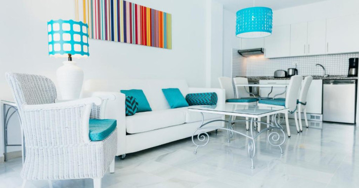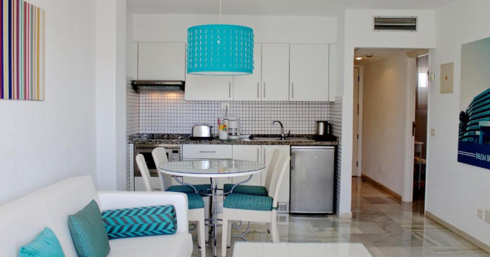Apartamentele si studiourile de la Palm Beach - Excel Hotels & Resorts Club au decor elegant si vedere la piscină sau la mare. Acestea includ un lounge cu canapea extensibilă si TV cu plasmă cu DVD player, precum si o bucătărie modernă cu frigider, cuptor cu microunde si prăjitor de paine. Oaspetii pot inchiria de la receptie DVD-uri si un seif.