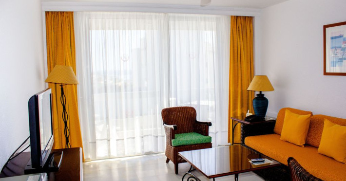Around 100 m from a beach is located the apart hotel Palm Beach. The nearest restaurants and bars can be reached in a few minutes on foot. The city centre is also just a few steps away. Shops are right on your doorstep, a supermarket is also just a few metres away from the hotel. In the surrounding an aqua park (approx. 600 m), a theatre (approx. 3,4 km), a cinema (approx. 1,7 km) and a golf course (approx. 1,2 km) offer entertainment during the best time of the year. The beach is patrolled by a lifeguard. The hotel is equipped with a 24h reception (check-in is possible around the clock), a lobby bar, Wi-Fi, a lift, a supermarket, cash machine, a hairdresser, a jacuzzi, showers and changing rooms, a first aid kit, parking spaces (for a fee) as well as a TV lounge with satellite TV. In the outdoor area of the property you will find a garden as well as a seasonally open, heated pool (open all year), where you can rent pool towels for a fee and sun loungers and sun umbrellas are available for free. There is also a children's pool. Furthermore, outside you can find a sun terrace. You can store your valuables in the safe (extra fee), and your luggage in the hotel`s storage roomn. For your entertainment, the hotel offers a library/reading room. For very young guests, kid`s chairs, highchairs and cots can be provided. For your clothes there is a laundry and ironing service. For your comfort, in addition to the concierge service the hotel page will ensure you are looked after. If necessary, you can contact the medical centre at any time. Guests at the accommodation can get a wake-up call from the hotel personnel. If you want to explore the holiday region, you can use the car rental service close to the hotel (extra fee). At the reception, tickets are offered for excursions in the area. In your hotel, a lot of focus is placed on sustainability. This includes among others the hotel`s own recycling bins. The hotel requires that all guests pay a deposit upon arrival. Due to its barrier-free facilities , such as barrier-free entrances, wheelchair accessible rooms and wheelchair-accessible bathrooms, the hotel is also suitable for wheelchair users. Catering As catering services the hotel offers half board, breakfast only and self-catering. Breakfast is offered from the buffet (extras on request). Enjoy your lunch à la carte. Dinner is also served as a buffet (extras on request). For the meals, there are a buffet restaurant and the cafeteria as well as the pool bar. A picnic bench can be used by guests for self-catering. For dinner, guests are asked to wear appropriate clothing in the restaurant. Distances- Nearest town: approx. 75 km