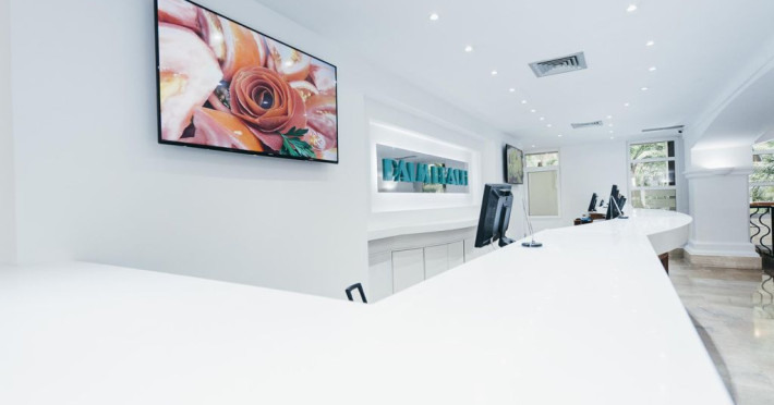 Around 100 m from a beach is located the apart hotel Palm Beach. The nearest restaurants and bars can be reached in a few minutes on foot. The city centre is also just a few steps away. Shops are right on your doorstep, a supermarket is also just a few metres away from the hotel. In the surrounding an aqua park (approx. 600 m), a theatre (approx. 3,4 km), a cinema (approx. 1,7 km) and a golf course (approx. 1,2 km) offer entertainment during the best time of the year. The beach is patrolled by a lifeguard. The hotel is equipped with a 24h reception (check-in is possible around the clock), a lobby bar, Wi-Fi, a lift, a supermarket, cash machine, a hairdresser, a jacuzzi, showers and changing rooms, a first aid kit, parking spaces (for a fee) as well as a TV lounge with satellite TV. In the outdoor area of the property you will find a garden as well as a seasonally open, heated pool (open all year), where you can rent pool towels for a fee and sun loungers and sun umbrellas are available for free. There is also a children's pool. Furthermore, outside you can find a sun terrace. You can store your valuables in the safe (extra fee), and your luggage in the hotel`s storage roomn. For your entertainment, the hotel offers a library/reading room. For very young guests, kid`s chairs, highchairs and cots can be provided. For your clothes there is a laundry and ironing service. For your comfort, in addition to the concierge service the hotel page will ensure you are looked after. If necessary, you can contact the medical centre at any time. Guests at the accommodation can get a wake-up call from the hotel personnel. If you want to explore the holiday region, you can use the car rental service close to the hotel (extra fee). At the reception, tickets are offered for excursions in the area. In your hotel, a lot of focus is placed on sustainability. This includes among others the hotel`s own recycling bins. The hotel requires that all guests pay a deposit upon arrival. Due to its barrier-free facilities , such as barrier-free entrances, wheelchair accessible rooms and wheelchair-accessible bathrooms, the hotel is also suitable for wheelchair users. Catering As catering services the hotel offers half board, breakfast only and self-catering. Breakfast is offered from the buffet (extras on request). Enjoy your lunch à la carte. Dinner is also served as a buffet (extras on request). For the meals, there are a buffet restaurant and the cafeteria as well as the pool bar. A picnic bench can be used by guests for self-catering. For dinner, guests are asked to wear appropriate clothing in the restaurant. Distances