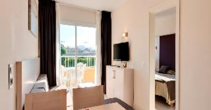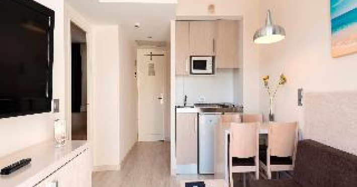 This apartment complex is a 10-minute walk from the harbour and the centre of Alcudia, only across the coastal road from the slightly sloping beach. Links to the transport network can easily be reached on foot and a nightclub is about 500 m away. The complex offers a cafe restaurant and a bar. In addition a small supermarket and a pizzeria are also available. Furthermore, there is a kids' club and a car park on offer.The pleasing apartments include a combined living room/bedroom, separate bedroom, en-suite bathroom, a kitchenette and a balcony.In the outdoor complex guests can find a swimming pool as well as a poolside and a snack bar. On offer are a hot tub, a sauna and a massage service. A wide selection of leisure options is available.Guests may select their breakfast, midday and evening meals from varied buffets. Lunch and dinner may also be taken à la carte.This apartment complex is a 10-minute walk from the harbour and the centre of Alcudia, only across the coastal road from the slightly sloping beach. Links to the transport network can easily be reached on foot and a nightclub is about 500 m away. The complex offers a cafe restaurant and a bar. In addition a small supermarket and a pizzeria are also available. Furthermore, there is a kids' club and a car park on offer.The pleasing apartments include a combined living room/bedroom, separate bedroom, en-suite bathroom, a kitchenette and a balcony.In the outdoor complex guests can find a swimming pool as well as a poolside and a snack bar. On offer are a hot tub, a sauna and a massage service. A wide selection of leisure options is available.Guests may select their breakfast, midday and evening meals from varied buffets. Lunch and dinner may also be taken à la carte.