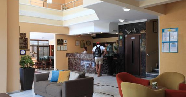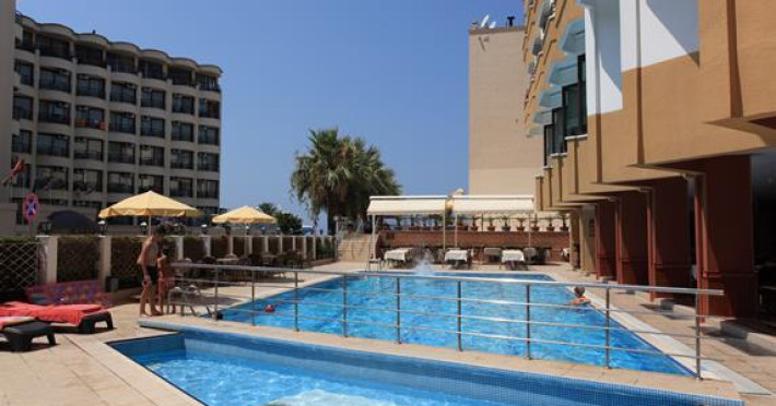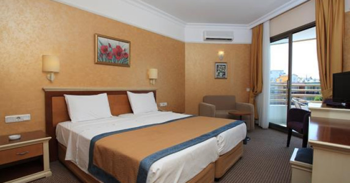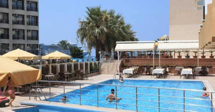 Palm Hotel is a luxury hotel located in Kusadasi, next to the yacht harbour. Palm Hotel offers views overlooking a beach, the Aegean Sea and KuÅadası Marina. It lies about 5 minutes on foot from the many beautiful cool shops and a minute walk from the public beach. In spite of the location to the street, you have no disturbance in the hotel itself from the car traffic. On the contrary, you could walk quietly to the top of the market which sold clothing. ------------------------- Palm Hotel Accommodatıon : This city and beach hotel was refurbished in 2009amp;2011 and provides comfortable accommodation with good facilities and a 24-hour reception in the lobby, where there is also a lounge area. The hotel offers a total of 70 rooms. Other facilities at this air-conditioned establishment include 24-hour check-out service, currency exchange facilities and lift access to the rooms. The café, American bar and restaurant offer snacks, dining and drinks. Conference facilities are available, and there is also a laundry service (for a fee). İnternet at general areas. ------------------------- Room description: The rooms have recently been refurbished and offer clean, comfortable accommodation. They are equipped with individually regulated air conditioning and also have a fire warning system and a minibar (for an extra charge). All rooms have a balcony. The bathroom has a shower and hairdryer. Additional in-room amenities include satellite TV and a direct dial telephone,safe box( (for an extra charge)For more details click hereDatorita dinamicitatii domeniului disponibilitatea ofertelor se modifica de la un moment la altul. De aceea ofertele sunt valabile in limita locurilor disponibile. Agentia nu este responsabila pentru eventualele neconcordante care pot aparea intre informatiile privind tarifele si alte detalii din site si informatiile primite in agentie. In aceste cazuri vor avea prioritate, intotdeauna, informatiile primite in agentie.