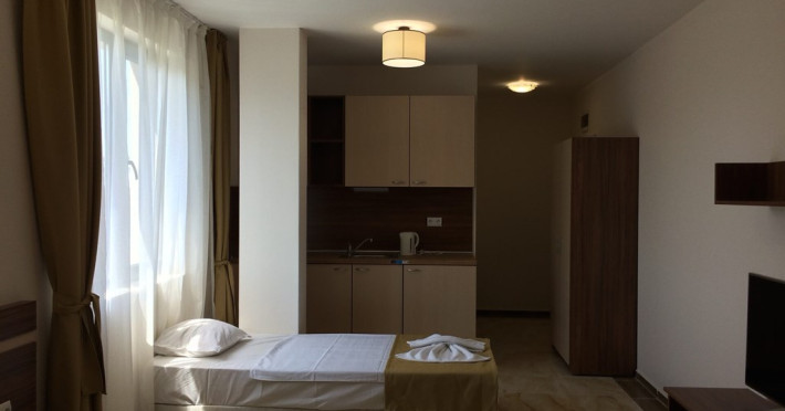 Hotelul Palm Residence Aparthotel 3* este situat la 500 de metri distanta fata de plaja si la 900 de metri de parcul acvatic Action.Datorita dinamicitatii domeniului disponibilitatea ofertelor se modifica de la un moment la altul. De aceea ofertele sunt valabile in limita locurilor disponibile. Agentia nu este responsabila pentru eventualele neconcordante care pot aparea intre informatiile privind tarifele si alte detalii din site si informatiile primite in agentie. In aceste cazuri vor avea prioritate, intotdeauna, informatiile primite in agentie.