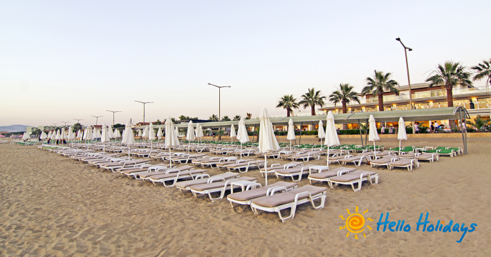 Palm Wings Ephesus este situat la 55 km de aeroportul orasului Izmir, la 8 km de centrul statiunii Kusadasi și la 7 km de localitatea Selcuk, chiar pe malul marii, pe plaja este certificată cu "Blue Flag". Orașul antic Efes se află la o distanță de 4 km de hotel.
