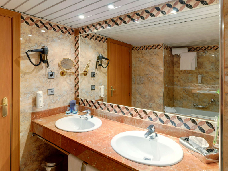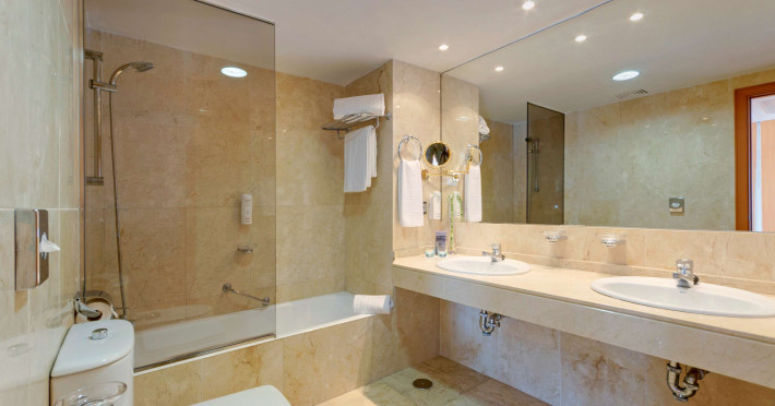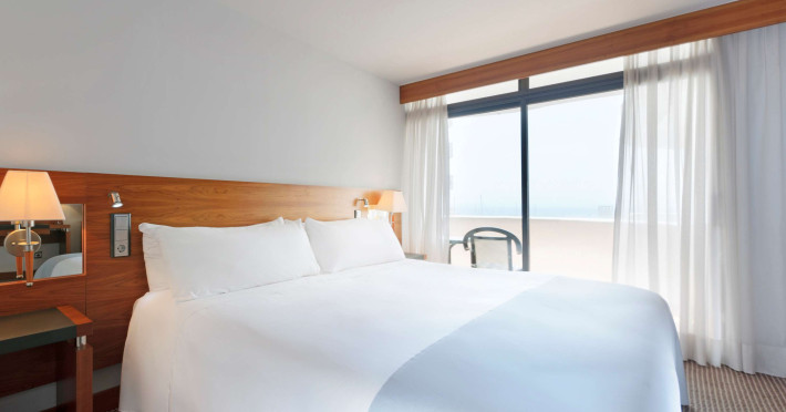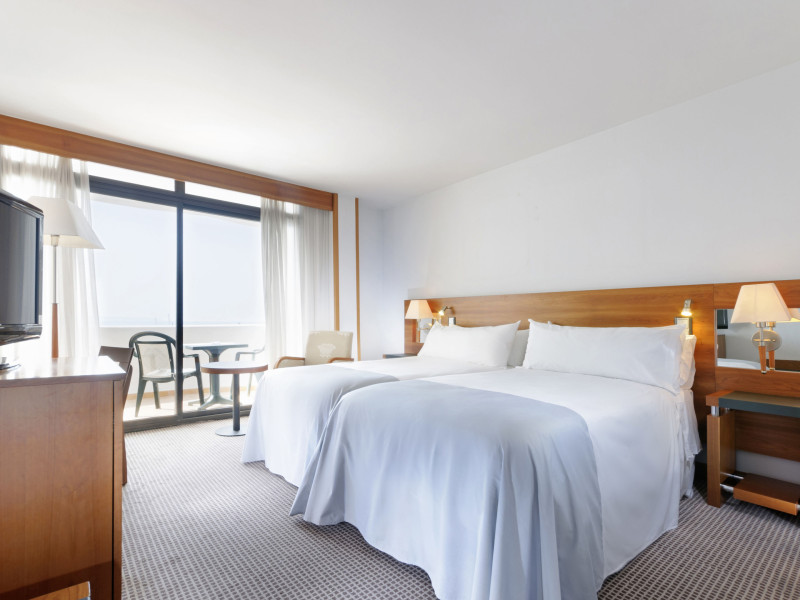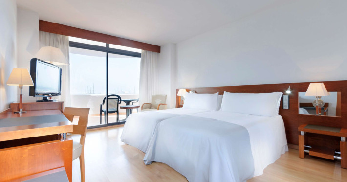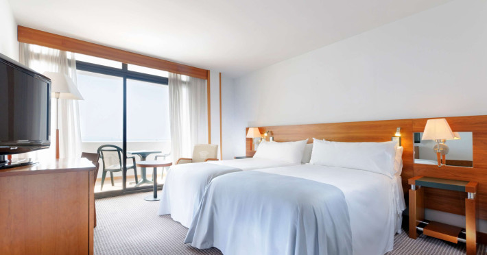 In camere există un aparat de aer condiționat și un sistem de incălzire. In majoritatea spațiilor de cazare clienții beneficiază de vedere spre mare de pe balcon sau de pe terasă. Camere dispun de un pat „King size” și de o canapea. Paturile suplimentare sau paturile pentru copii sunt disponibile pentru cei mici contra cost. De asemenea, sunt disponibile un seif, un minibar și un birou. Echiparea de bază cuprinde de asemenea și un minifrigider. In plus, există un telefon cu apelare directă, un televizor cu canale prin satelit/cablu TV și WiFi (gratuit). Băile sunt dotate cu un duș, o cadă și un bideu. Un uscător de păr, o oglindă de machiaj și halate de baie stau la dispoziție pentru folosința zilnică. Se oferă spre rezervare camere adaptate pentru scaun cu rotile. Hotelul oferă camere de familie și 361 de camere de nefumători.