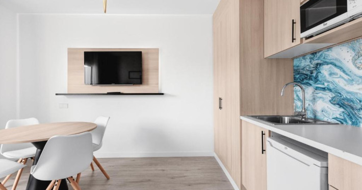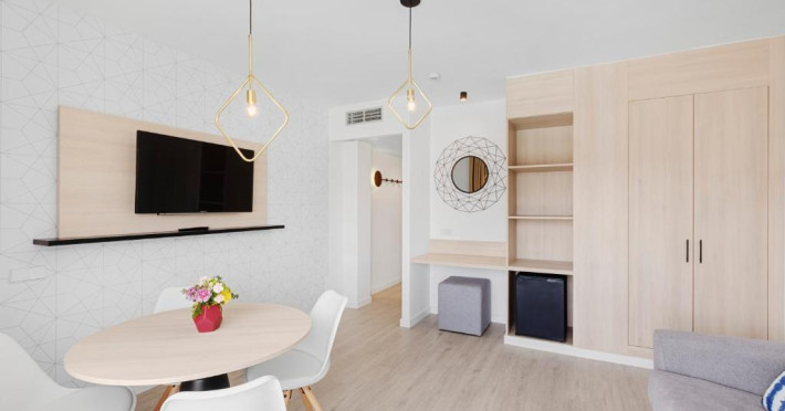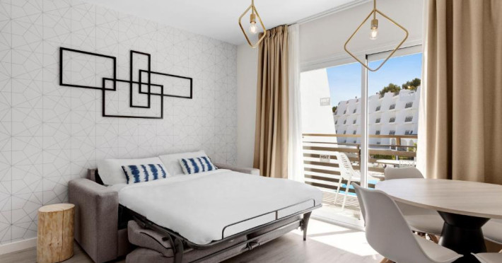 Apartamentele de la Palmanova Suites by TRH au balcon privat. Toate unitățile sunt prevăzute cu bucătărie cu frigider si cuptor cu microunde.