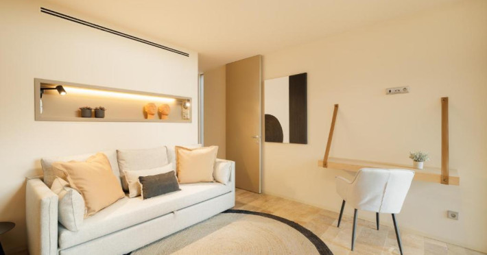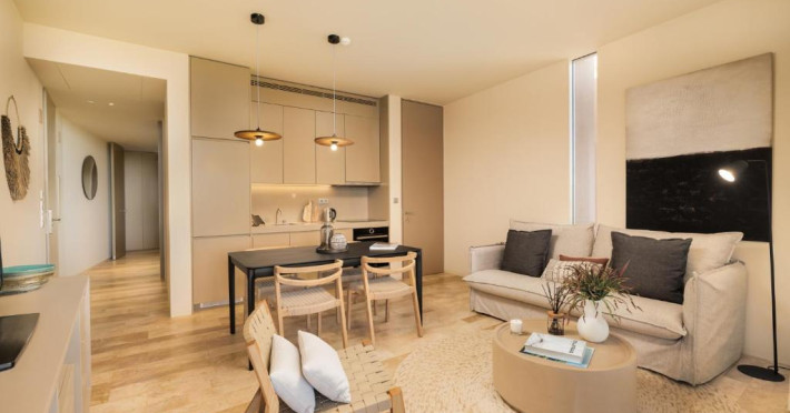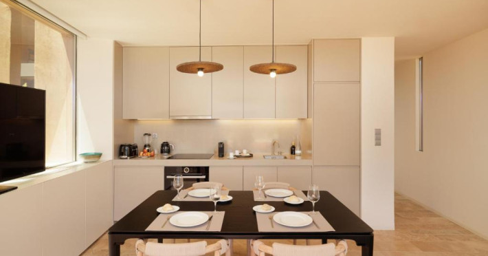 Hotelul de apartamente oferă oaspeților o terasă, vedere la mare, o zonă de relaxare, TV cu ecran plat cu canale prin cablu, o bucătărie complet utilată, cu mașină de spălat vase și cuptor, și o baie privată cu duș și articole de toaletă gratuite. De asemenea, există prăjitor de paine, frigider și plită, precum și aparat de cafea și fierbător. Unitățile includ o cutie de valori.