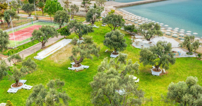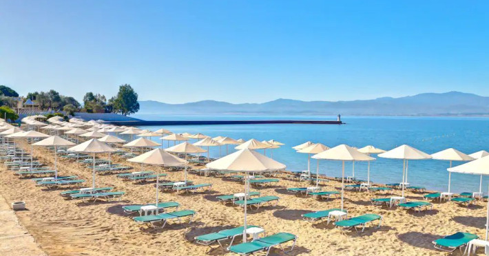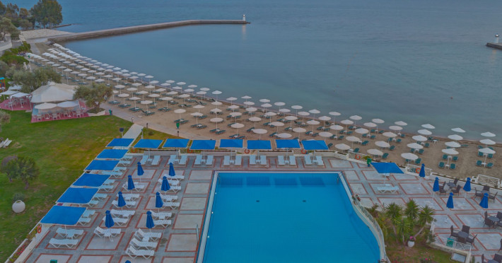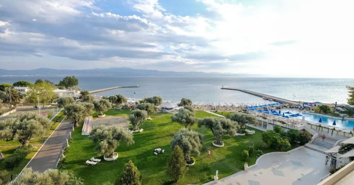 With panoramic views of the Euboean Gulf, Palmariva Beach Hotel in Eretria, Evia, is an ideal destination for unforgettable vacations. The hotel features a private sandy beach, an outdoor swimming pool, and meticulously landscaped gardens. This four-star resort offers a wide range of recreational facilities, including tennis and basketball courts, beach volleyball, a gym with a sauna, mini golf, playgrounds, and a kids club. All air-conditioned rooms and bungalows at Palmariva Beach Hotel boast private, furnished balconies with views of either the sea or the lush gardens. Each unit is equipped with a TV, mini fridge, safety deposit box, and private bathrooms with complimentary toiletries and a hairdryer. The hotel operates on an all-inclusive basis, providing high-quality services at the main restaurant, central bar, beach bar, and pool bar, ensuring a carefree and enjoyable experience for its guests.Datorita dinamicitatii domeniului disponibilitatea ofertelor se modifica de la un moment la altul. De aceea ofertele sunt valabile in limita locurilor disponibile. Agentia nu este responsabila pentru eventualele neconcordante care pot aparea intre informatiile privind tarifele si alte detalii din site si informatiile primite in agentie. In aceste cazuri vor avea prioritate, intotdeauna, informatiile primite in agentie.