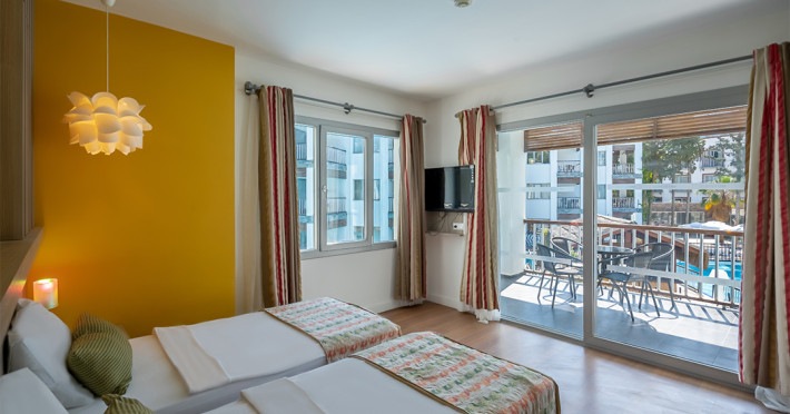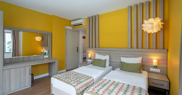 Camerele luminoase de la Palmet Family Bianco sunt dotate cu aer condiționat și Tv cu canale prin satelit. Fiecare cameră dispune de minibar. Camerele au balcon cu vedere la piscină sau la grădină. În camere există baie cu cadă sau duș prevăzută cu foehn. Oaspeții au acces gratuit la serviciul Wi-fi în camere. Curățenia in cameră se face zilnic. Proprietatea oferă camere pentru familie cu o suprafață mai mare și un număr mai mare de paturi față de cele standard.