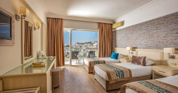Palmin hotel Kusadasi, is among the best and most modern 4 star hotels on offer in any of the Turkish holiday resorts. Palmin hotel was specifically designed with leisure travellers in mind though we cater equally well for business travellers, groups, weddings and conferences. The hotel is conveniently located overlooking ladies beach and within walking distance of all the best amenities which kusadasi has to offer. ------------------------- FACILITIES (INCLUDED) Car Park 24 hours Heated Indoor pool 09:00 - 19:00 (Not Heated in Hot Summer Months) Disabled friendly room Available Non Smoking rooms Not Available Pets Allowed Not Available Babysitter Not Available FACILITIES (EXTRA) Mini-bar On-request Room service 24 hours Laundry Service 08:00 - 17:00 Shops 08:00 - 20:00 Clothing Boutique 08:00 - 20:00 Photographer 08:00 - 20:00 Airport Transfer On request Car rental On-request Doctor (On Call) 24 hours Unisex Hairdresser 09:00 - 19:00 Phone amp; Fax Service 24 hours Safe box Available ------------------------- ACTIVITIES AMP; SPORTS (EXTRA) Turkish bath 09:00 - 19:00 Massage 09:00 - 19:00 Tennis Court (Daytime) 09:00 - 20:00 Billiards 10:30 - 22:30 Laptop Rental (in Lobby) 24 hours ACTIVITIES AMP; SPORTS (INCLUDED) Free shuttle service to the beach To 09.30 - 10.30 - 12.15 ndash; 13.30 - 16.30 - 18.00 From 09.45 - 10.45 - 12.30 ndash; 13.45 - 16.45 - 18.15 (Includes Sun Lounger, Mattress amp; Parasols) Free towel service 08.30-10.30 amp; 16.00-19.00 Daily Animation Daily Night Time Show 5 Nights per week Mini club 10:00 - 12:00 (Ages 04-12) amp; 15:00 - 17:00 Childrenrsquo;s Playground 09:00 - 18:00 TV Lounge 10:30 - 22:30 Table tennis Available Darts Available Heated Indoor pool 09:00 - 19:00 (Under 12rsquo;s must be accompanied by an adult) (Not Heated in Hot Summer Months) Outdoor pool 08:00 - 19:00 Childrenrsquo;s pool 08:00 - 19:00 Water slides 13:00 - 15:00 Childrenrsquo;s Water slides 13:00 - 15:00 Steam room 09:00 - 19:00 Fitness Gym 09:00 - 19:00 (Not allowed for 15 years and younger) Sauna 09:00 - 19:00 Jacuzzi 09:00 - 19:00 Wifi (Lobby Area) 24 hours ------------------------- FOOD AMP; BEVERAGE; Breakfast 07:30 - 10:30 Included Lunch 12:30 - 14:00 Included Snacks 14:00 - 16:30 Included Coffee amp; tea time 16:30 - 17:30 Included Dinner 19:30 - 21:30 Included Soup time 23:30 - 00:30 Included Pool bar 10:00 - 24:00 Included Lobby bar 10:00 - 24:00 Included Soft drink 10:00 - 24:00 Included Local alcohol 10:00 - 24:00 Included Import alcohol Extra Ice cream Extra Turkish coffee Extra Freshly squeezed orange juice Extra All of the above are self service. For more details click hereDatorita dinamicitatii domeniului disponibilitatea ofertelor se modifica de la un moment la altul. De aceea ofertele sunt valabile in limita locurilor disponibile. Agentia nu este responsabila pentru eventualele neconcordante care pot aparea intre informatiile privind tarifele si alte detalii din site si informatiile primite in agentie. In aceste cazuri vor avea prioritate, intotdeauna, informatiile primite in agentie.