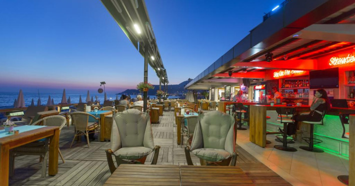 La Palmiye Beach Hotel oaspeții au la dispoziție un restaurant care servește mâncare în stil bufet și à la carte. Masa poate fi servită atât în interior, cît si în aer liber, pe terasă, în funcție de vreme. Oaspeţii pot avea diverse băuturi răcoritoare sau alcoolice la bar.