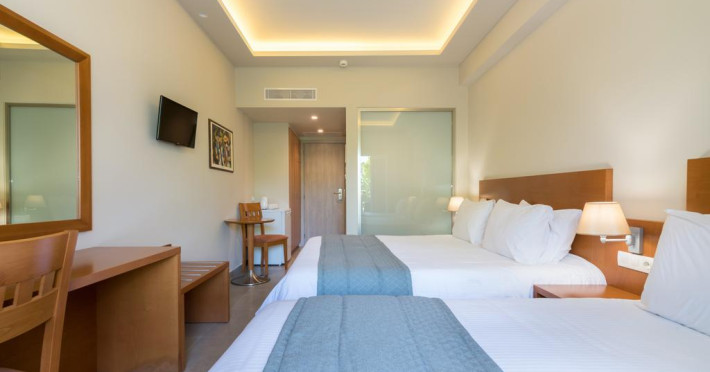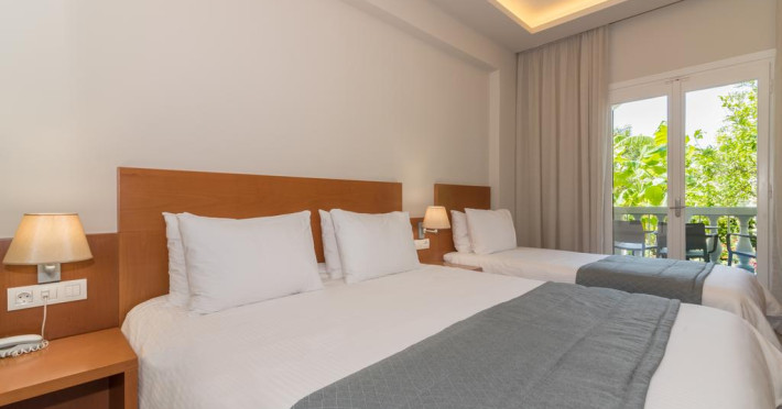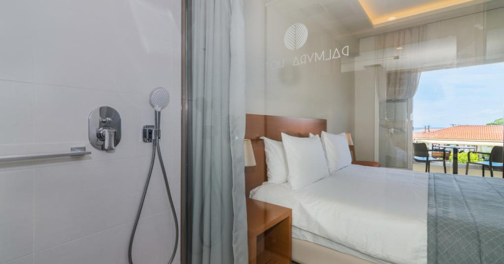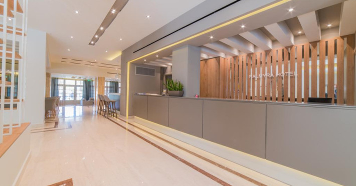 Fiecare cameră dispune de cană-fierbător. Camerele confortabile de la Palmyra au pardoseală de gresie/ marmură, aer condiționat, Tv cu canale prin satelit și seif. Unele camere au balcon cu vedere la grădină sau la piscină. În camere există baie cu duș ce are în dotare foehn și articole de toaletă gratuite. Oaspeții au acces gratuit la serviciul Wi-fi în camere. Curățenia in cameră se face zilnic. Fiecare unitate de cazare are frigider. De asemenea, este disponibilă o zonă de luat masa. Proprietatea oferă camere pentru familie cu o suprafață mai mare și un număr mai mare de paturi față de cele standard.
