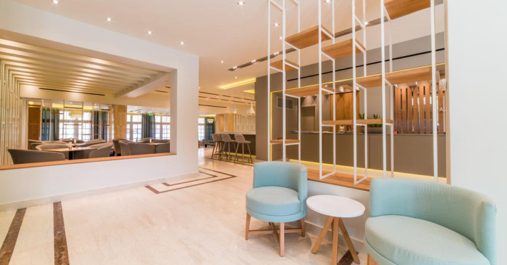 La Palmyra oaspeții pot servi masa à la carte. Preparate din bucătăria grecească și internațională așteaptă să fie degustate în fiecare zi la micul dejun, prânz și cină. În cadrul proprietății există și un snack bar care servește băuturi și gustări.