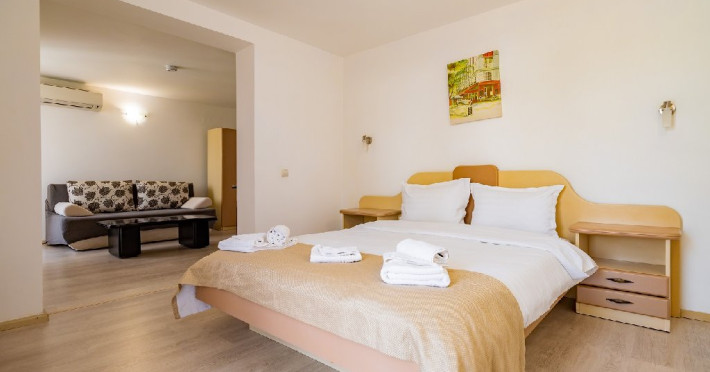 Camerele family sunt compuse din dormitor cu pat matrimonial si living cu canapea extensibila.