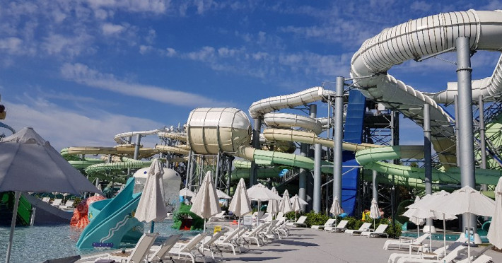 Facilitati hotel: Hotelul pune la dispozitia oaspetilor numeroase restaurante si baruri, piscina exterioara, sezlonguri si umbrele, aqua park, centru spa, fitness, spectacole, programe de divertisment.