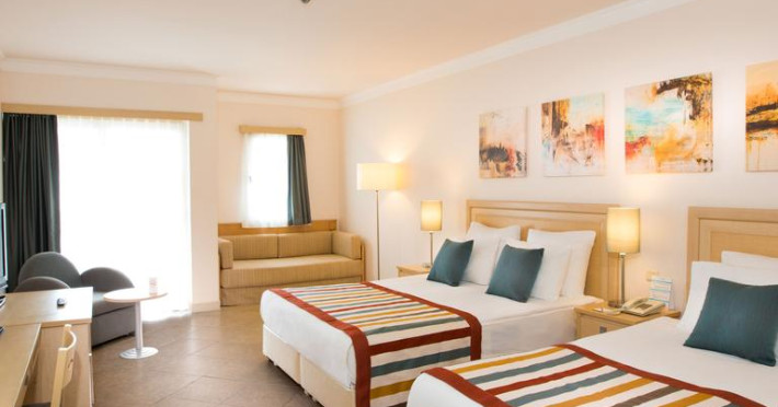 Sunt disponibile 459 camere. Fiecare cameră dispune de un aparat pentru preparare cafea sau ceai, cană-fierbător și minibar. Oaspeții pot solicita serviciul de room service pentru a servi masa sau diverse băuturi. Camerele au balcon cu masă și scaune unde pot fi petrecute momente de relaxare. Camerele confortabile de la Paloma Grida Resort & Spa au pardoseală de gresie/ marmură, aer condiționat, Tv cu canale prin satelit și seif. În camere există baie cu cadă sau duș ce are în dotare foehn și articole de toaletă gratuite. Oaspeții au acces gratuit la serviciul Wi-fi în camere. Curățenia in cameră se face zilnic. Proprietatea oferă camere pentru familie cu o suprafață mai mare și un număr mai mare de paturi față de cele standard. Se pot rezerva de asemenea camere pentru nefumători.