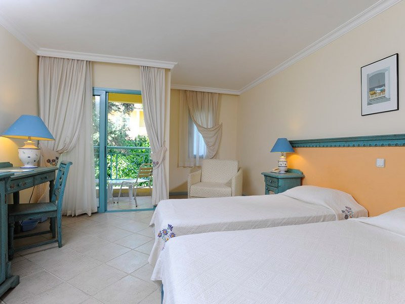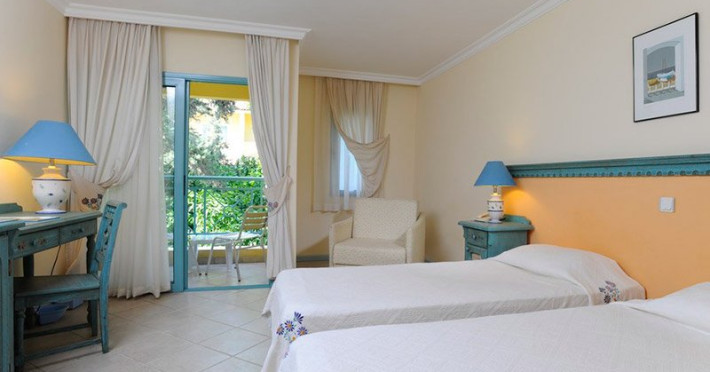 telefon, TV satelit, minibar, seif (extra), aer conditionat centralizat, baie cu cada sau dus, uscator de par, ceainic, balcon cu vedere la gradina.