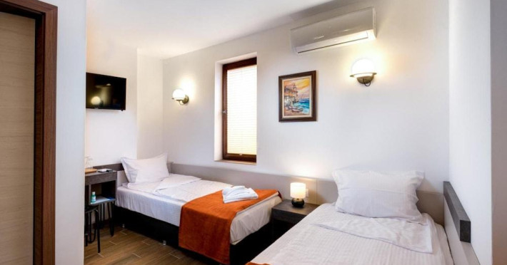 Property Location With a stay at Panorama Blue in Nessebar (Nessebar Old Town), you'll be within a 15-minute drive of Aqua Paradise and Sunny Beach. This hotel is 0.1 mi (0.1 km) from Church of the Holy Archangels Michael and Gabriel and 0.1 mi (0.1 km) from Church of Saint Paraskevi. Distances are displayed to the nearest 0.1 mile and kilometer. Sveta Bogoroditsa Church - 0.1 km / 0.1 mi Church of Saint Sophia - 0.1 km / 0.1 mi Winery Hristis - 0.1 km / 0.1 mi Church of Saint Paraskevi - 0.1 km / 0.1 mi Nessebar Ethnographic Museum - 0.1 km / 0.1 mi Church of the Holy Archangels Michael and Gabriel - 0.2 km / 0.1 mi Sveti Spas Church - 0.2 km / 0.1 mi Byzantine Baths Complex - 0.2 km / 0.1 mi Church of Saint John the Baptist - 0.2 km / 0.1 mi Basilica of the Holy Mother of God Eleusa - 0.2 km / 0.2 mi Church of Christ Pantocrator - 0.3 km / 0.2 mi Church of St John Aliturgetos - 0.4 km / 0.3 mi Archaeological Museum - 0.6 km / 0.4 mi Nessebar Old Town Beach - 0.6 km / 0.4 mi Old Nessebar Windmill - 0.8 km / 0.5 mi The preferred airport for Panorama Blue is Bourgas (BOJ) - 26.5 km / 16.5 mi Rooms Make yourself at home in one of the 9 air-conditioned rooms featuring flat-screen televisions. Complimentary wireless internet access keeps you connected, and cable programming is available for your entertainment. Bathrooms feature bathtubs or showers, complimentary toiletries, and hair dryers. Conveniences include electric kettles, and housekeeping is provided daily. Dining Enjoy a meal at the restaurant or snacks in the hotel's coffee shop/cafe. Quench your thirst with your favorite drink at the bar/lounge. Business, Other Amenities Featured amenities include dry cleaning/laundry services, luggage storage, and laundry facilities. Guests may use a roundtrip airport shuttle for a surcharge, and free self parking is available onsite.Property Location With a stay at Panorama Blue in Nessebar (Nessebar Old Town), you'll be within a 15-minute drive of Aqua Paradise and Sunny Beach. This hotel is 0.1 mi (0.1 km) from Church of the Holy Archangels Michael and Gabriel and 0.1 mi (0.1 km) from Church of Saint Paraskevi. Distances are displayed to the nearest 0.1 mile and kilometer. Sveta Bogoroditsa Church - 0.1 km / 0.1 mi Church of Saint Sophia - 0.1 km / 0.1 mi Winery Hristis - 0.1 km / 0.1 mi Church of Saint Paraskevi - 0.1 km / 0.1 mi Nessebar Ethnographic Museum - 0.1 km / 0.1 mi Church of the Holy Archangels Michael and Gabriel - 0.2 km / 0.1 mi Sveti Spas Church - 0.2 km / 0.1 mi Byzantine Baths Complex - 0.2 km / 0.1 mi Church of Saint John the Baptist - 0.2 km / 0.1 mi Basilica of the Holy Mother of God Eleusa - 0.2 km / 0.2 mi Church of Christ Pantocrator - 0.3 km / 0.2 mi Church of St John Aliturgetos - 0.4 km / 0.3 mi Archaeological Museum - 0.6 km / 0.4 mi Nessebar Old Town Beach - 0.6 km / 0.4 mi Old Nessebar Windmill - 0.8 km / 0.5 mi The preferred airport for Panorama Blue is Bourgas (BOJ) - 26.5 km / 16.5 mi Rooms Make yourself at home in one of the 9 air-conditioned rooms featuring flat-screen televisions. Complimentary wireless internet access keeps you connected, and cable programming is available for your entertainment. Bathrooms feature bathtubs or showers, complimentary toiletries, and hair dryers. Conveniences include electric kettles, and housekeeping is provided daily. Dining Enjoy a meal at the restaurant or snacks in the hotel's coffee shop/cafe. Quench your thirst with your favorite drink at the bar/lounge. Business, Other Amenities Featured amenities include dry cleaning/laundry services, luggage storage, and laundry facilities. Guests may use a roundtrip airport shuttle for a surcharge, and free self parking is available onsite.