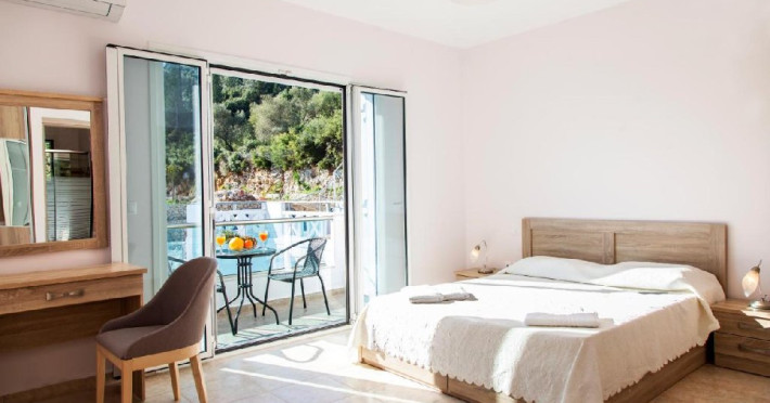 1 x Camera dubla (50 mp) cu intrare separata de la exterior, ce ofera o vedere superba la mare, la piscina si la gradina (capacitate pana la 4 persoane):