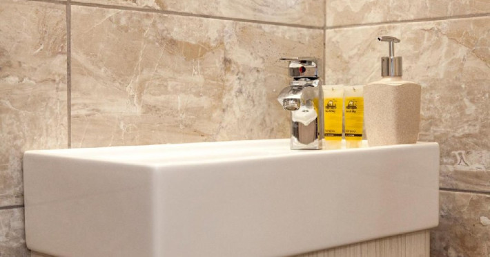 2 bai cu cada sau dus, prosoape si uscator de par.