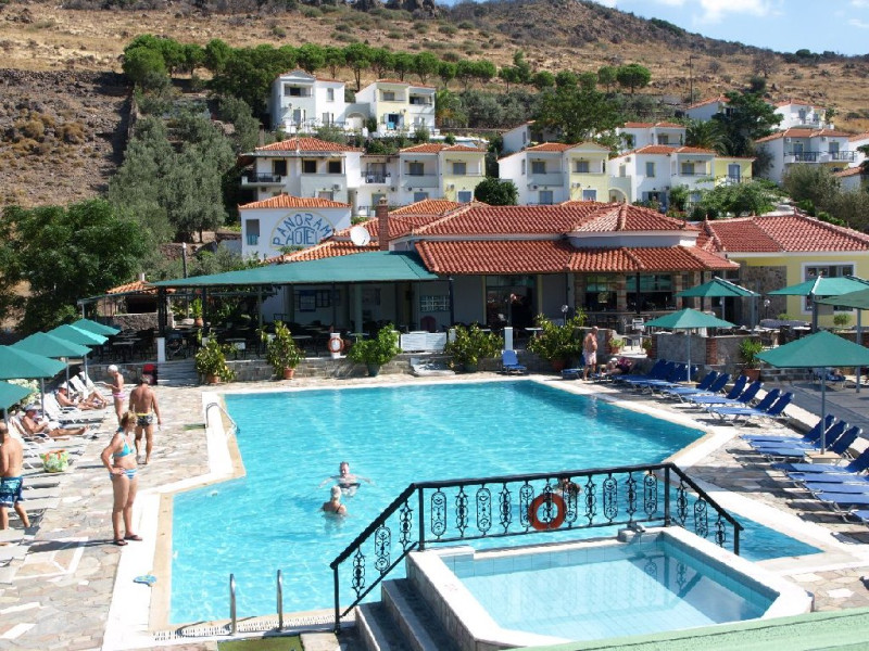 Descriere: Hotelul Panorama 3* este renumit pentru conditiile rafinate si comfortabile de cazare, oferind oaspetilor servicii si dotari exclusiviste si elegante.Construit in 1992, ultima renovare a avut loc in 2016.Hotelul Panorama este situat pe o colina pitoreasca cu vedere spre satul Petra, cu vedere spre mare si munte. Distanta fata de aeroportul Mytilene este de 55 km.Facilitati:restaurant, bar, pool bar, piscina, sistem audio, bar lounge spatios cu TV, biblioteca comuna.