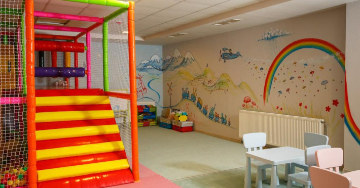 Pentru orele toride cei mici pot opta pentru zona de joacă amenajată la interior, unde există jocuri și muzică.