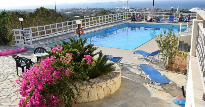 Hotelul se afla situat la 1.5 km de cosmopolita statiune Hersonissos, pe un deal din zona linistita a statiunii Anissaras, oferind o vedere spectaculoasa spre mare. Statia de autobuz este situata la aproximativ 600 m de hotel si aeroportul din Heraklion la 17 km.