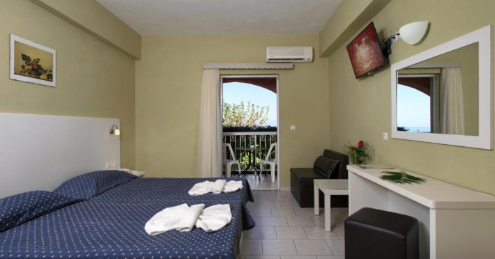 Embark on your dream vacation in Greece at the scenic Panorama Sidari Hotel. Surrounded by green olive trees, the beach resort is the ultimate destination for relaxation anytime of the year. The hotel is a mere 10-minute walk from the beach of Sidari and offers incredible views of the Ionian Sea’s turquoise waters. Panorama Sidari Hotel has 180 rooms distributed over 12 buildings. Each is adorned with tranquil decorations and cosy furnishings. Guests can also enjoy their own private balcony that overlooks the aesthetically-pleasing landscape below. Our unmatched attention to detail and luxury accommodations ensure an unforgettable vacation.Datorita dinamicitatii domeniului disponibilitatea ofertelor se modifica de la un moment la altul. De aceea ofertele sunt valabile in limita locurilor disponibile. Agentia nu este responsabila pentru eventualele neconcordante care pot aparea intre informatiile privind tarifele si alte detalii din site si informatiile primite in agentie. In aceste cazuri vor avea prioritate, intotdeauna, informatiile primite in agentie.