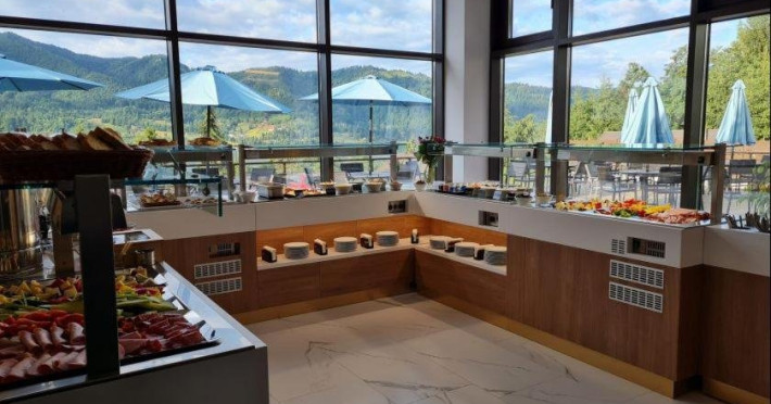- Restaurant si bar: restaurantul are o capacitate de 70 de locuri si o terasa la fel de generoasa;- Patinoar pe timpul iernii;