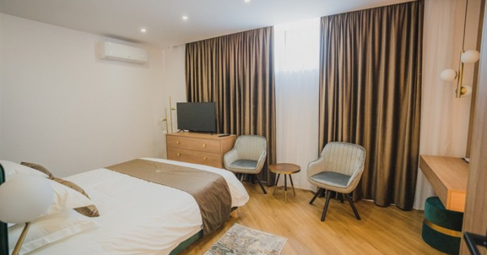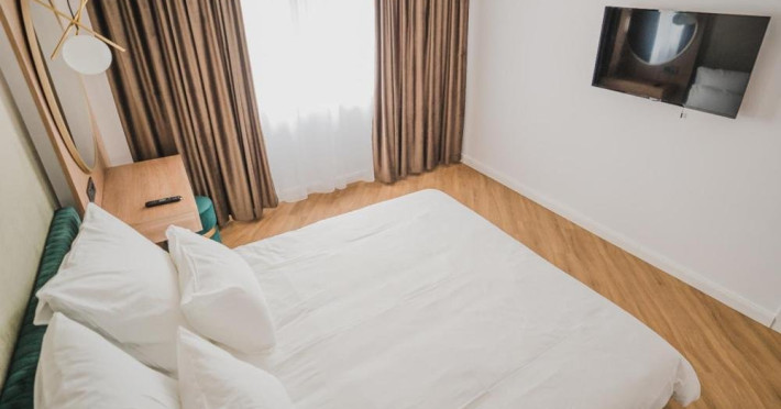 Apartament: format dintr-un dormitor si un living, dormitorul are doua paturi twin ce pot fi apropiate, iar living-ul o canapea extensibila, de asemenea exista si o zona pentru preparat si servit masa (cuptor cu microunde, fierbator, aparat de cafea), baie proprie cu dus, balcon sau terasa, aer conditionat