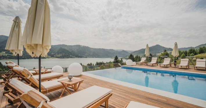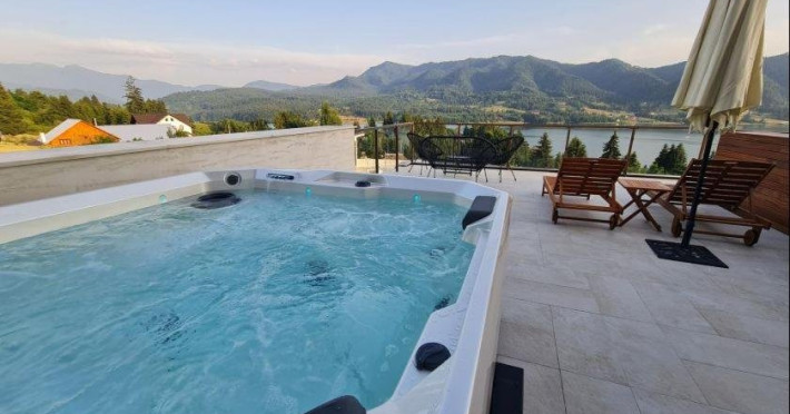 Turistii se pot bucura de piscina pe tot parcursul anului. Pot admira panorama asupra lacului Colibita si a muntilor direct din piscina infinity incalzita, la o temperatura medie de 38 de grade. Este amplasata perfect la etajul superior, conceputa sa fie folosita tot timpul anului pentru un sejur memorabil.