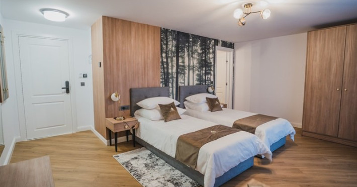 Camera dubla standard: Camera are pat dublu/twin si compenseaza prin designul interior deosebit dezavantajul de a nu avea expunere catre lac. Are si un mic balcon unde turistii pot savura cafeaua in mijlocul naturii.