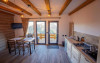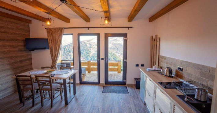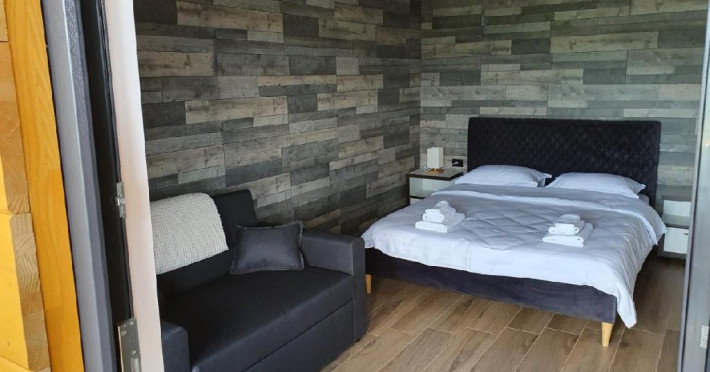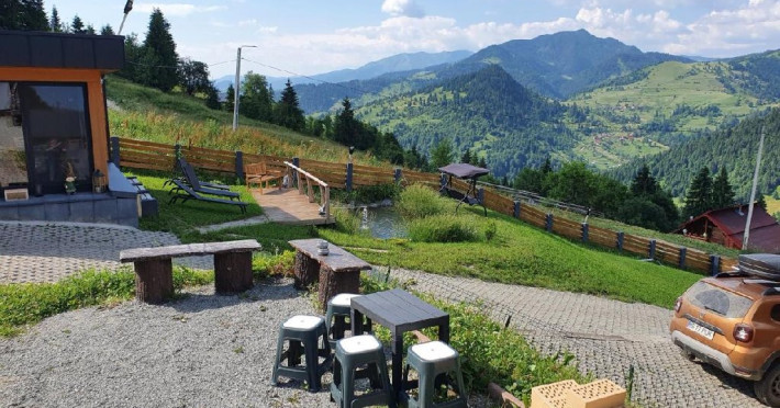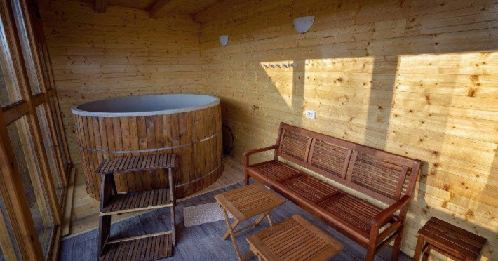 De asemenea turistii pot beneficia de loc de joaca pentru copii prevazut cu topogan si leagan, balansoare pentru adulti, ponton cu sezlong, scaune si masute pentru a admira privelistea, sauna si ciubar, costul acestora fiind inclus in tariful camerei.