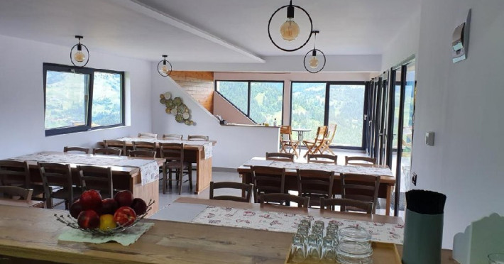In locatie se gaseste si o bucatarie mare cu o capacitate de aproximativ 30 de persoane utilata complet, salon de zi cu facilitati recreative (jocuri de societate si pentru copii), foisor cu terasa, loc pentru gratar sau ceaun, posibilitatea contactari servicii servire pranz si cina prin firma de catering.