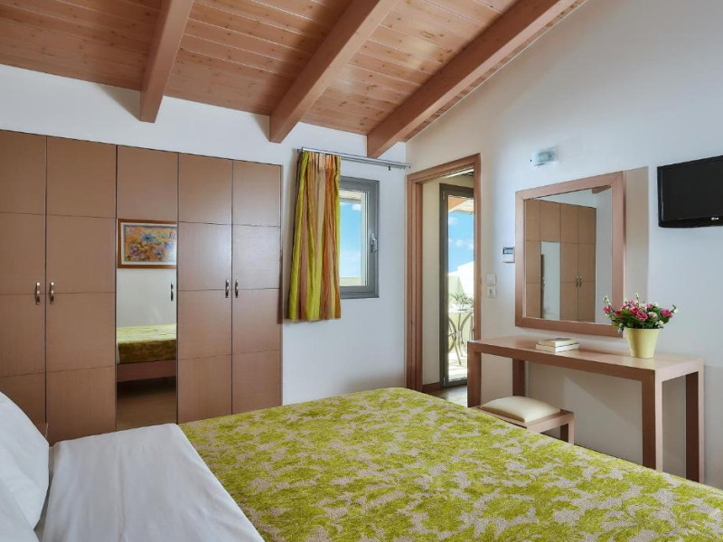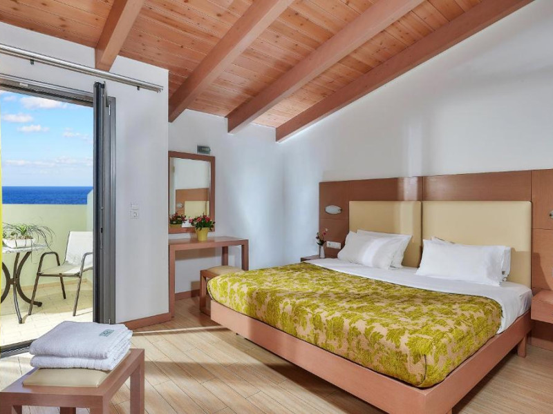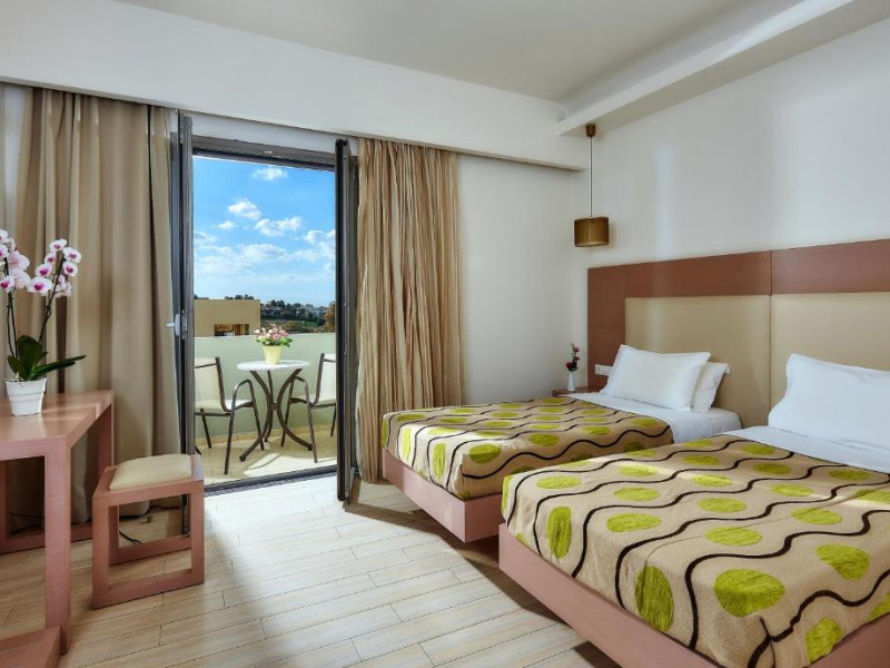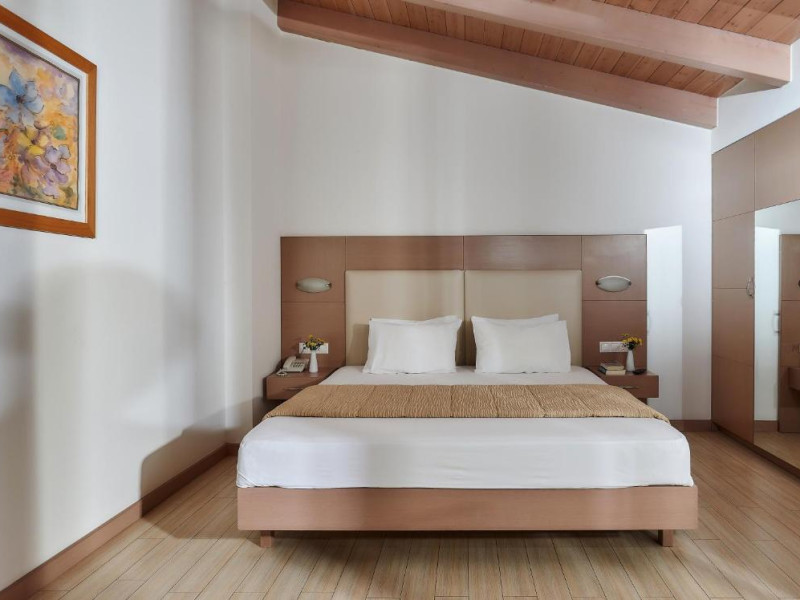 Camerele și suitele de la Panormo Beach se deschid spre un balcon cu vedere la grădină, piscină sau Marea Cretei. Acestea sunt dotate cu aer condiționat, mini-frigider și seif. Baia privată, decorată cu mozaic, are o cabină de duș cu hidromasaj, iar unele unități oferă o cadă spa.