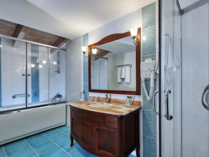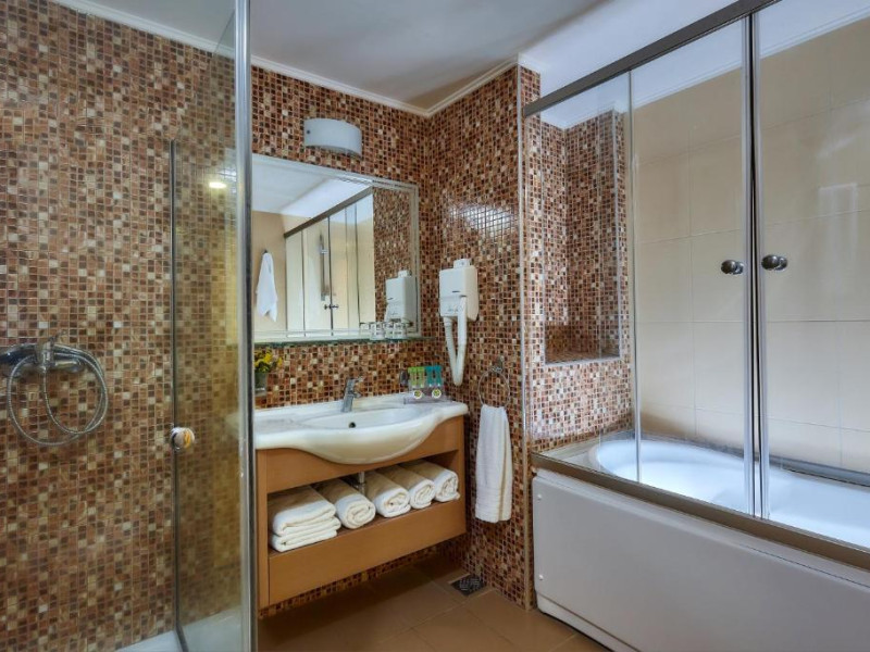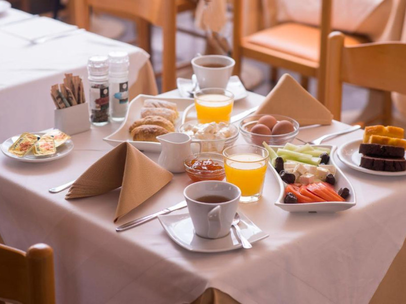 Oaspeții iși pot incepe ziua cu un mic dejun tip bufet, care include gemuri proaspete, plăcinte și alte produse locale. Restaurantul servește preparate grecești și internaționale, iar la restaurant există și un lounge bar elegant și un bar in grădină pe acoperiș.