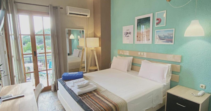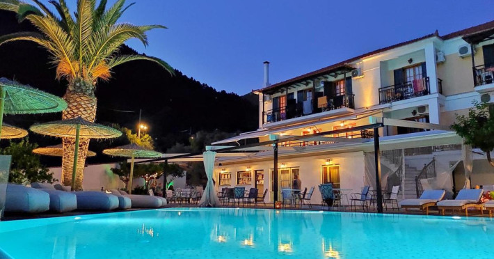 Situat intr-o oaza de verdeata si la nici 100m de mare, acest hotel traditional, cu o arhitectura specifica Insulelor Sporade, uimeste prin eleganta si serviciile pe care le ofera.Datorita dinamicitatii domeniului disponibilitatea ofertelor se modifica de la un moment la altul. De aceea ofertele sunt valabile in limita locurilor disponibile. Agentia nu este responsabila pentru eventualele neconcordante care pot aparea intre informatiile privind tarifele si alte detalii din site si informatiile primite in agentie. In aceste cazuri vor avea prioritate, intotdeauna, informatiile primite in agentie.