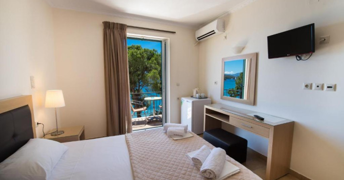 Marina Pansion se află in Nydri si oferă cazare pe malul mării, la mai puțin de 1 km de plaja Nidri, și pune la dispoziție diverse facilități, precum un bar, o grădină si o zonă de plajă privată. Accesul la internet WiFi este gratuit in intreaga proprietate, iar cascada Dimosari se află la mai puțin de 1 km.