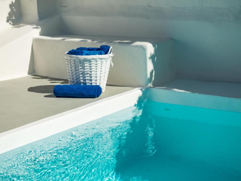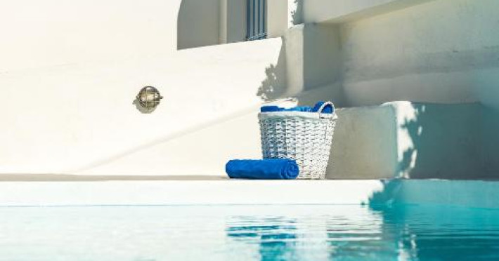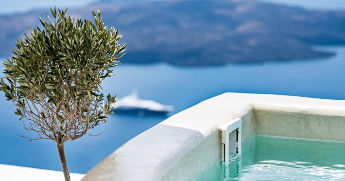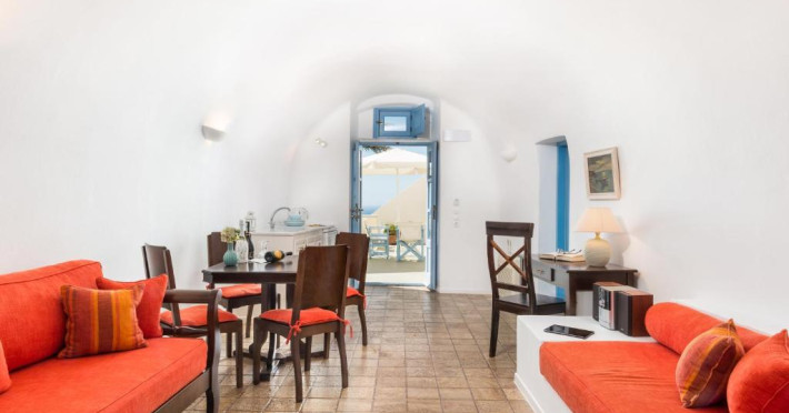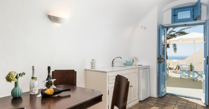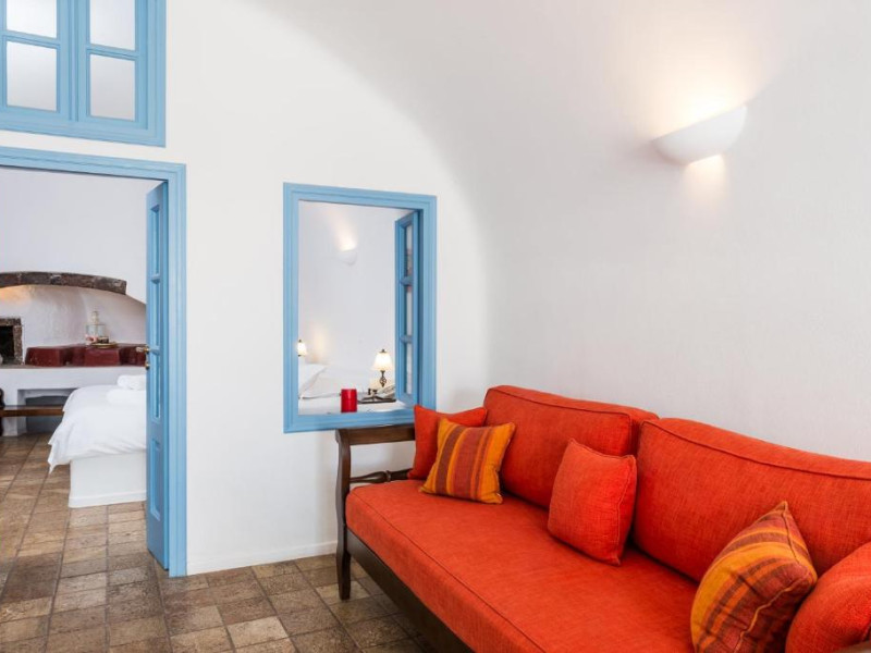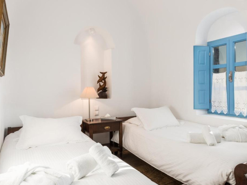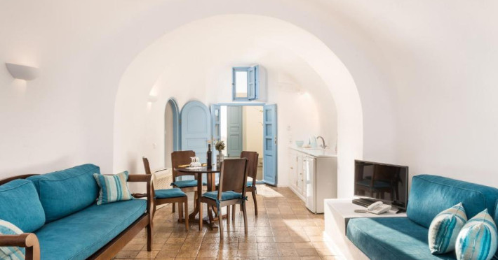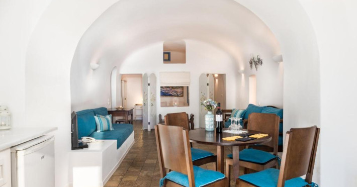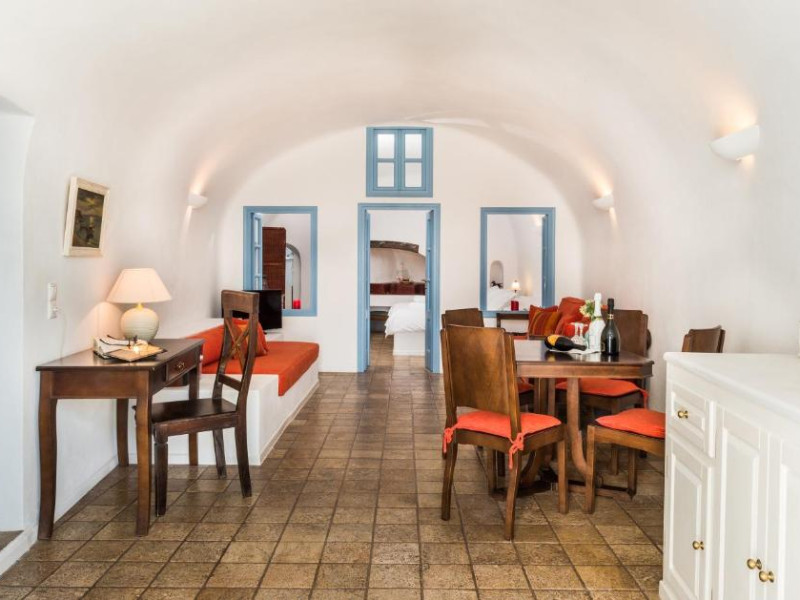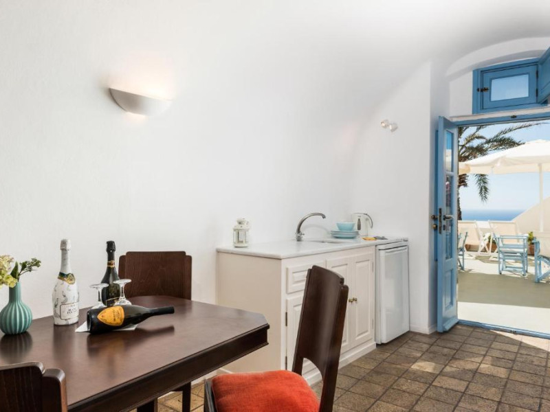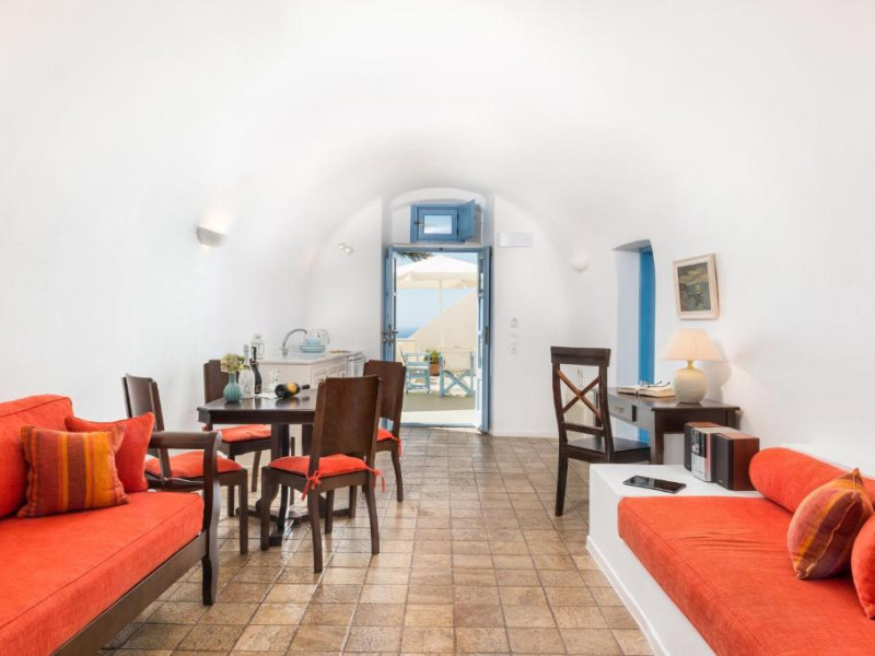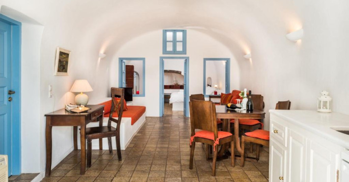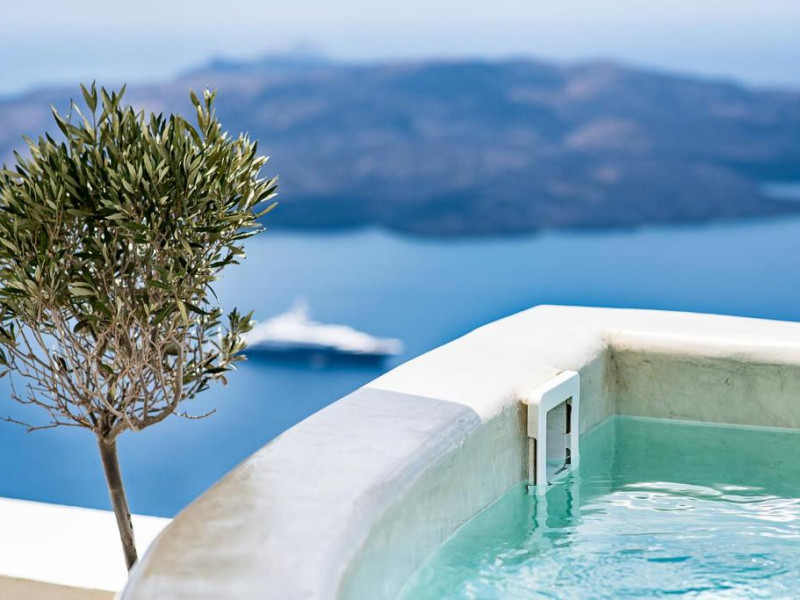 Hotelul este situat in Fira, capitala insulei, pe stancile calderei, cu vedere superbă la vulcan și faimoasele apusuri de soare din Santorini.