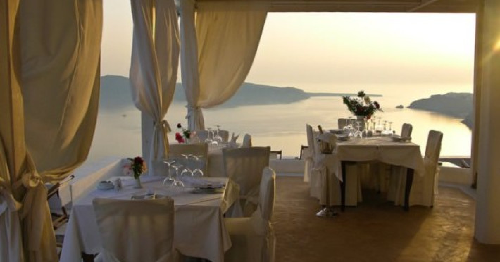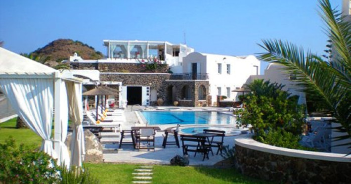 Hotelul se afla in Imerovigli, intr-una dintre cele mai faimoase zone ale insulei ce ofera o vedere panoramica asupra calderei, a vulcanului si asupra intregii insule, fiind aproape de renumitul sat Oia, recunoscut pentru superbele sale apusuri.Localizare