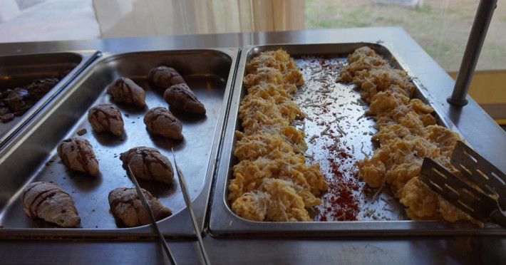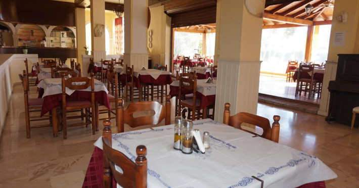La Pantheon Hall oaspeții au la dispoziție un restaurant care servește mâncare în stil bufet. Preparate din bucătăria grecească așteaptă să fie degustate în fiecare zi. Masa poate fi servită atât în interior, cît si în aer liber, pe terasă, în funcție de vreme. Oaspeţii pot avea diverse băuturi răcoritoare sau alcoolice la bar. În cadrul proprietății există și un snack bar care servește băuturi și gustări.